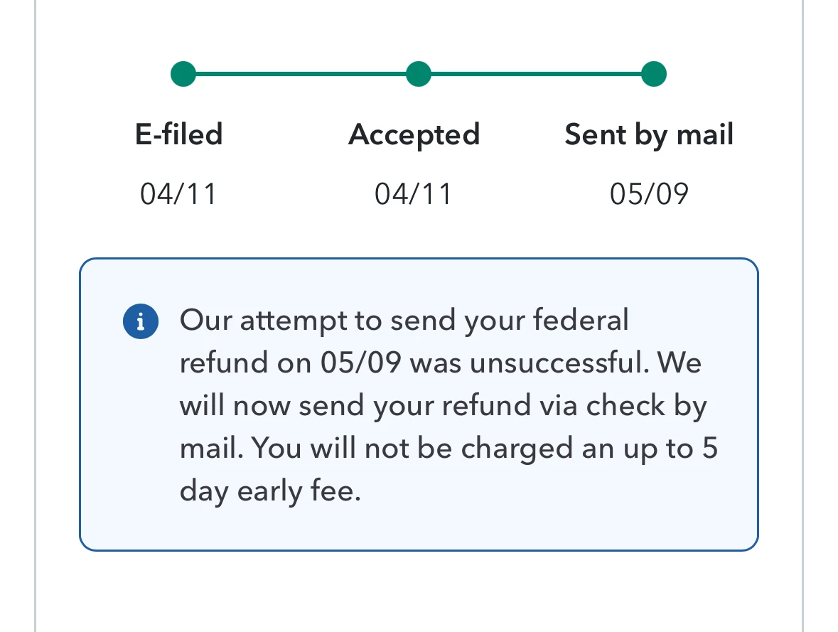 “I filed my taxes using TurboTax on April 11th and selected the option to receive my refund 5 days early. However, I mistakenly entered a wire number instead of the routing number, so I haven’t received the money yet. They said they would mail me a check instead. when should I expect it to arrive