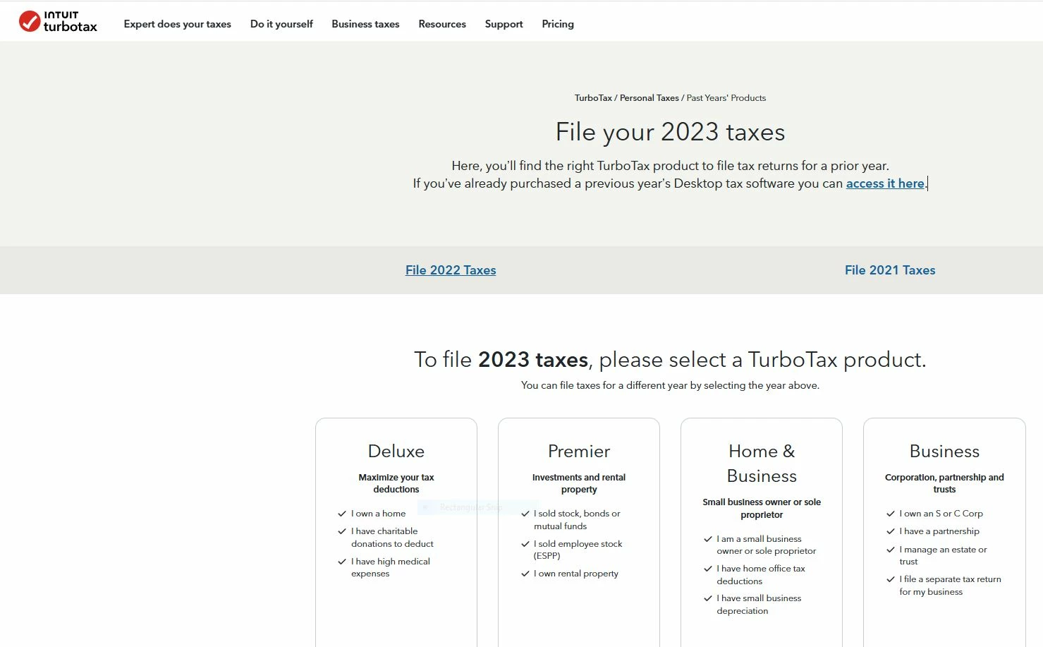 MmotoforzausaForum|Forum|11 months agoApril 9, 2025Questionhow can i file taxes for previous year 2023? if i want to get turbotax for pevious yer it only gives me 2022 and prior option?Forum|Forum|11 months agoApril 9, 20251 reply0 viewsNo text available