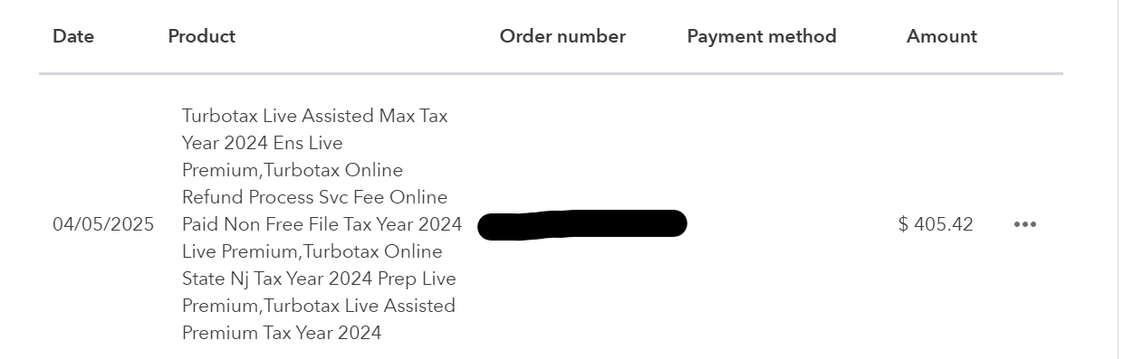 In total, $405.42 was paid for all of the TurboTax services, which includes the $40 processing fee for using our federal return to pay for everything. My problem is that every time I click to view my order, it only shows $365.42. It will not show the $40 processing fee.