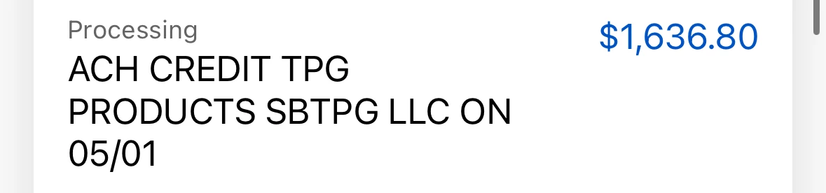 Received refund from "TPG PRODUCTS SBTPG LLC” today but amount is short by $700