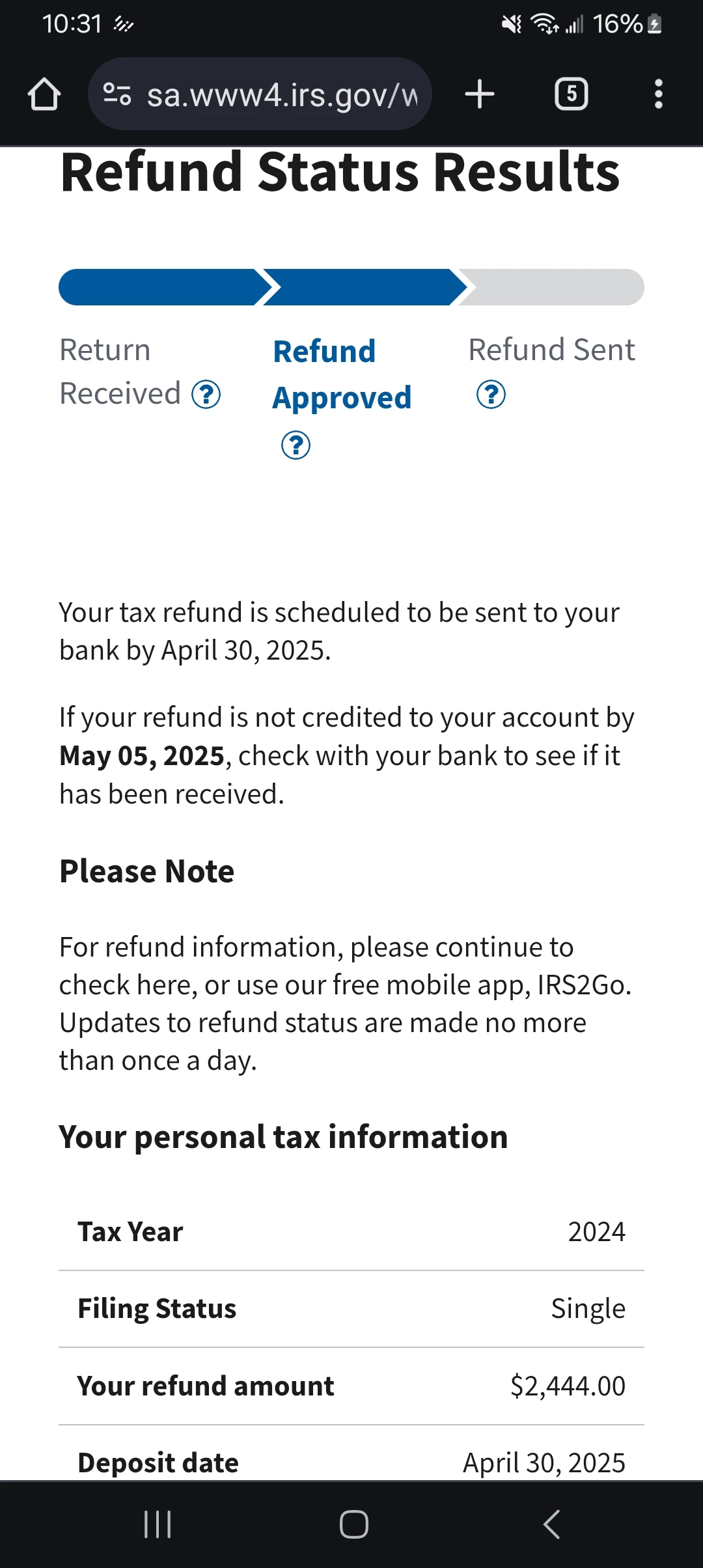 Is the amount sent/issued by the IRS the same as the refund amount shown on your federal tax return Form 1040 Line 35a? - https://www.irs.gov/refunds
