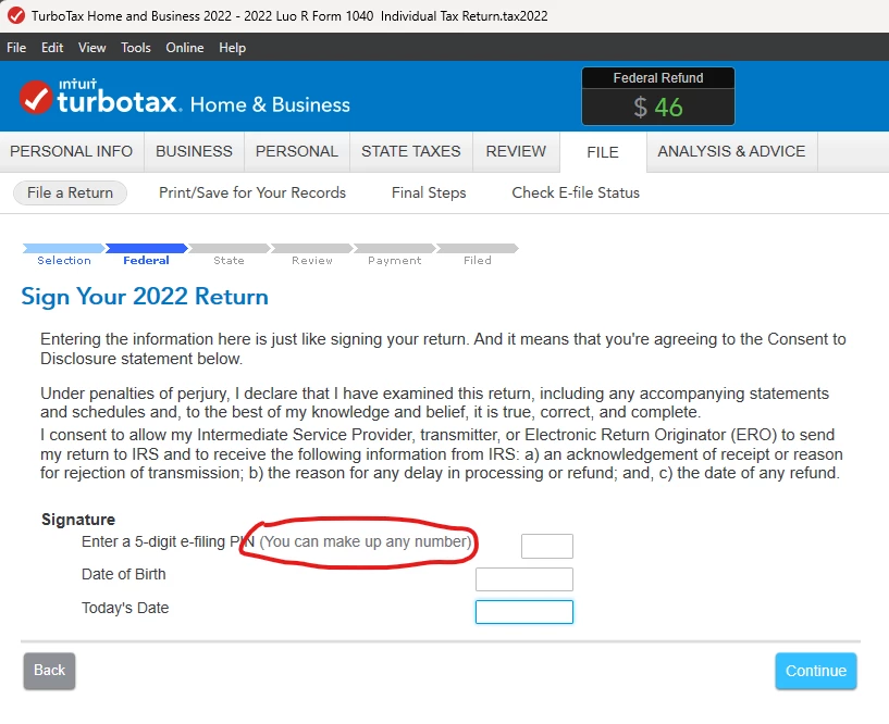 - Self Select PIN - https://www.irs.gov/e-file-providers/self-select-pin-method-for-forms-1040-and-4868-modernized-e-file-mef