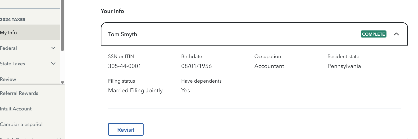 I am at the end and the other thing it asked was for his social. I have not entered any of his W-2 information