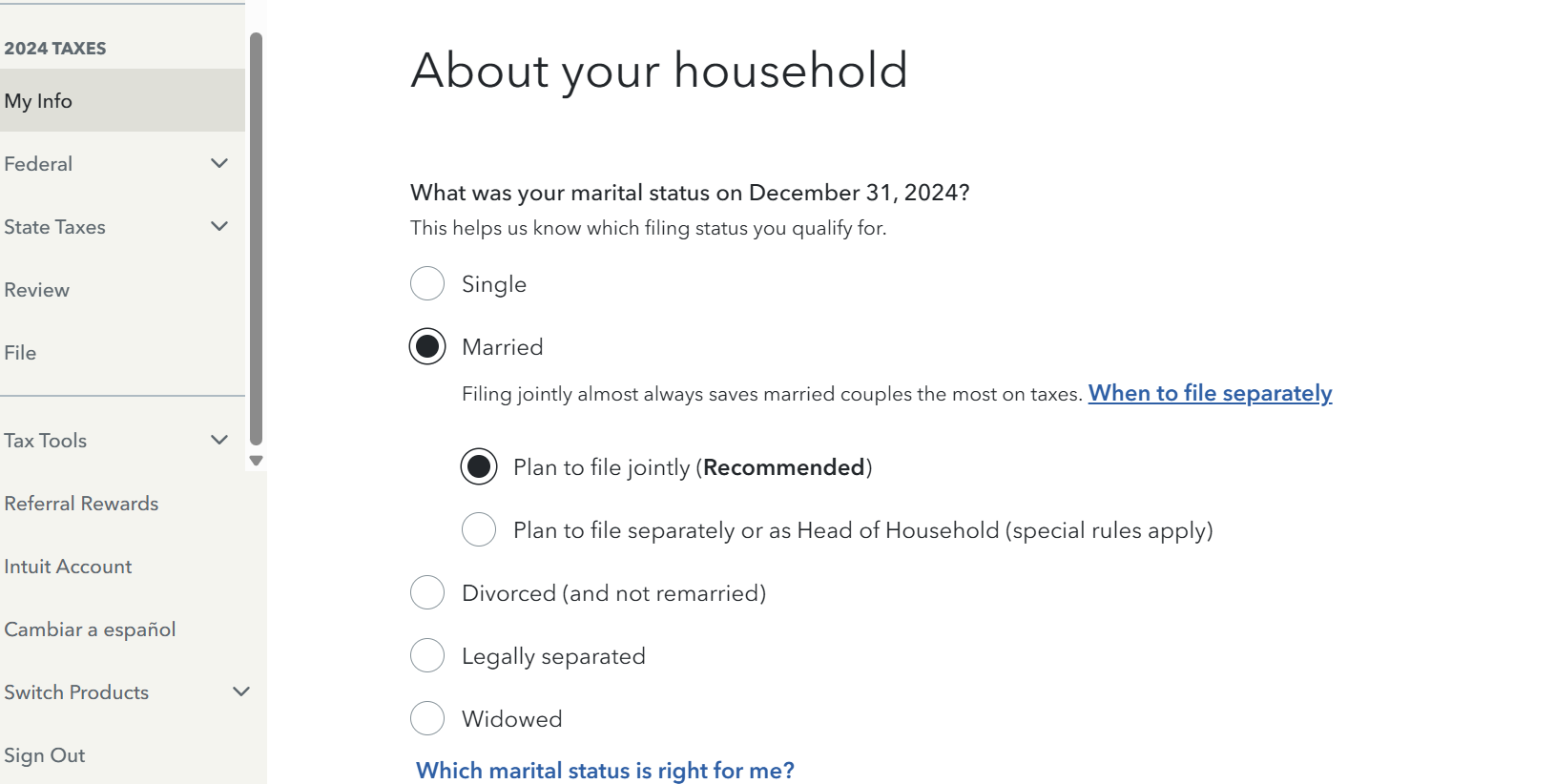 This is the first year that I am filing taxes jointly with my husband. At what part does it ask for his W-2 information?