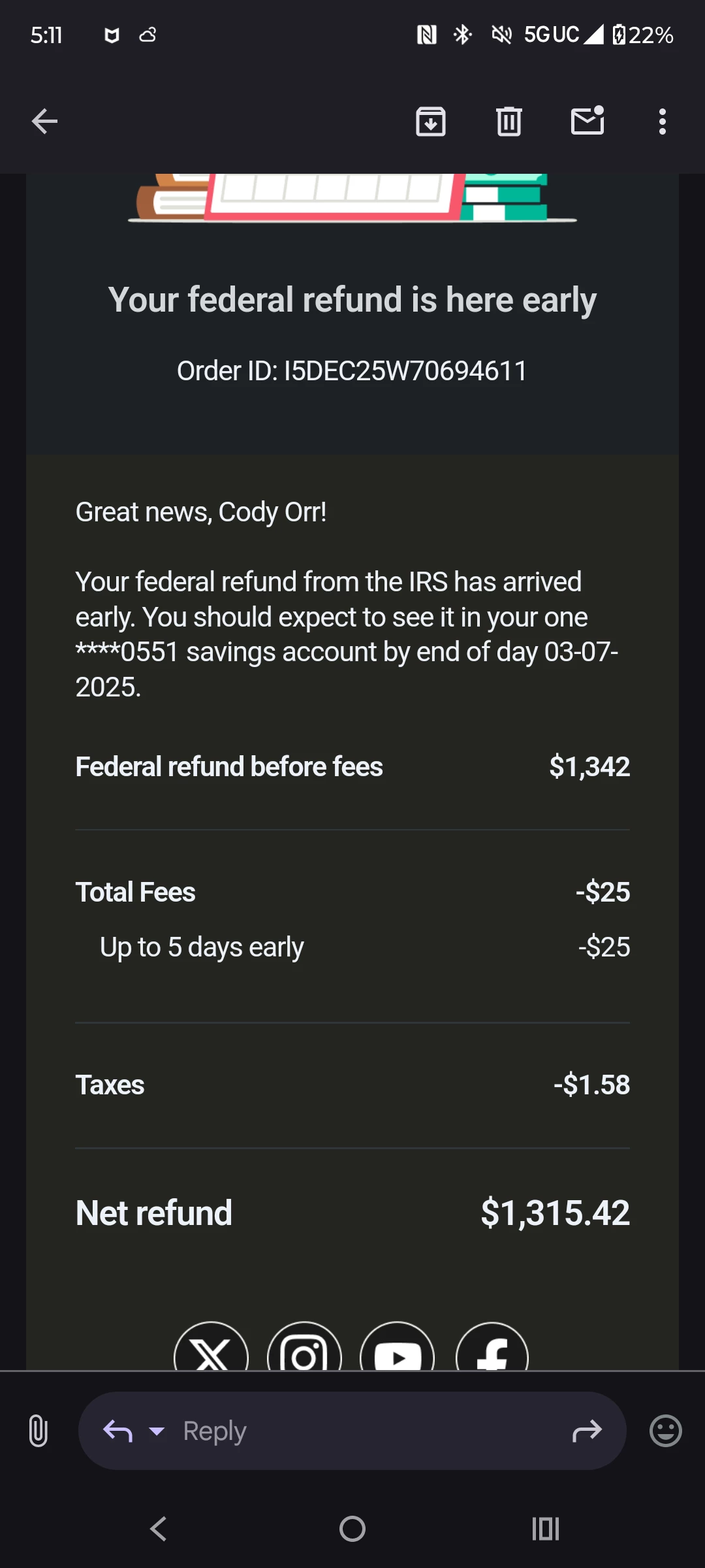Got an email today from tt saying my refund will be deposited by end of day today (3/7/25) , is this accurate or a marketing email