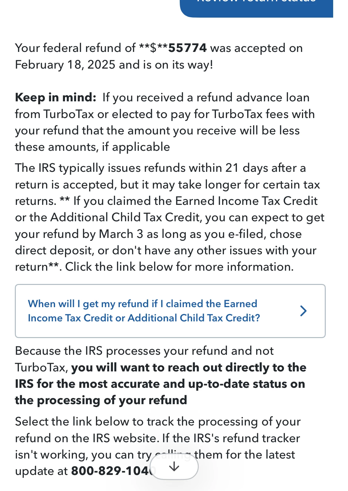 TurboTax refund status say my taxes refund is on it’s way without add irs day what that mean ?
