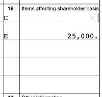 Show $25,000 affecting basis.