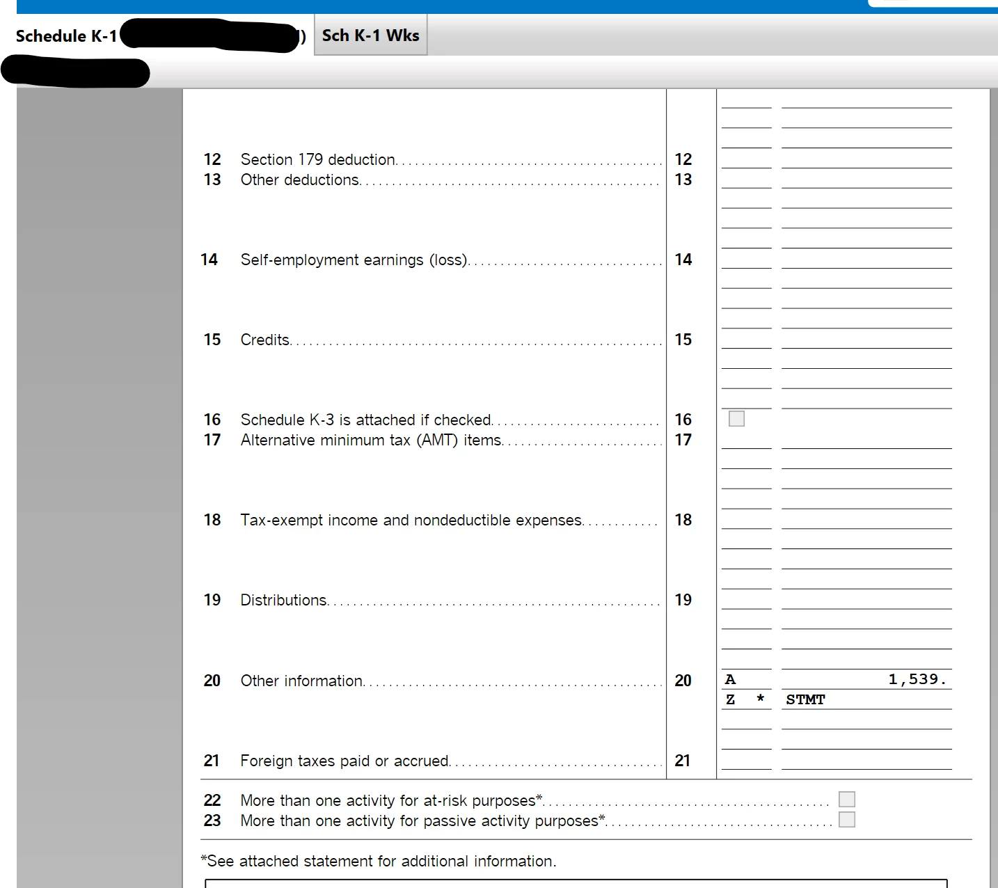 Just want to add Code T to Box 20 and simply no way to do it. Would really appreciate any insight or help (this is for a partnership LLC using 1065)