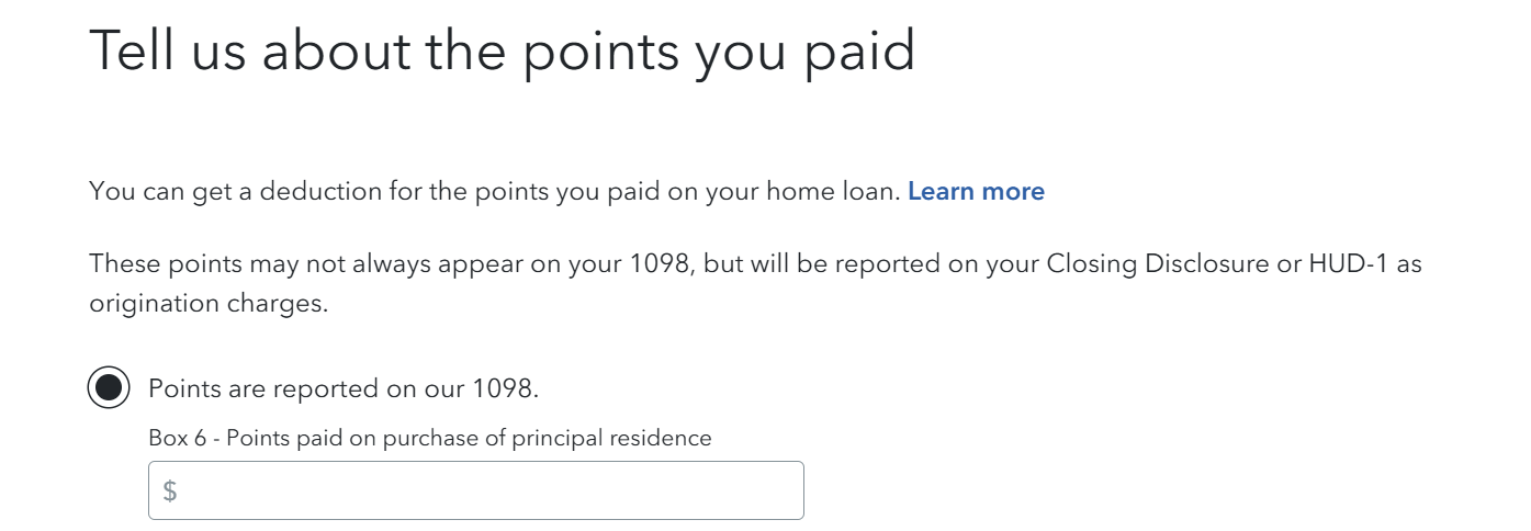I just purchased a house 2024 and I have an amount in box 6 for points paid on purchase of principal residence. Can I deduct that amount and where do I put it.