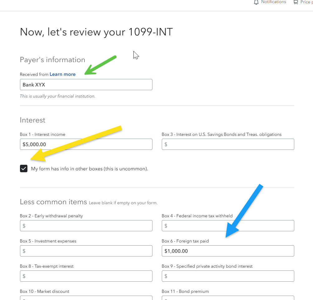 I earned some money from bank interest in foreign country and paid tax over that in the foreign country too. where i should fill that info in tax return
