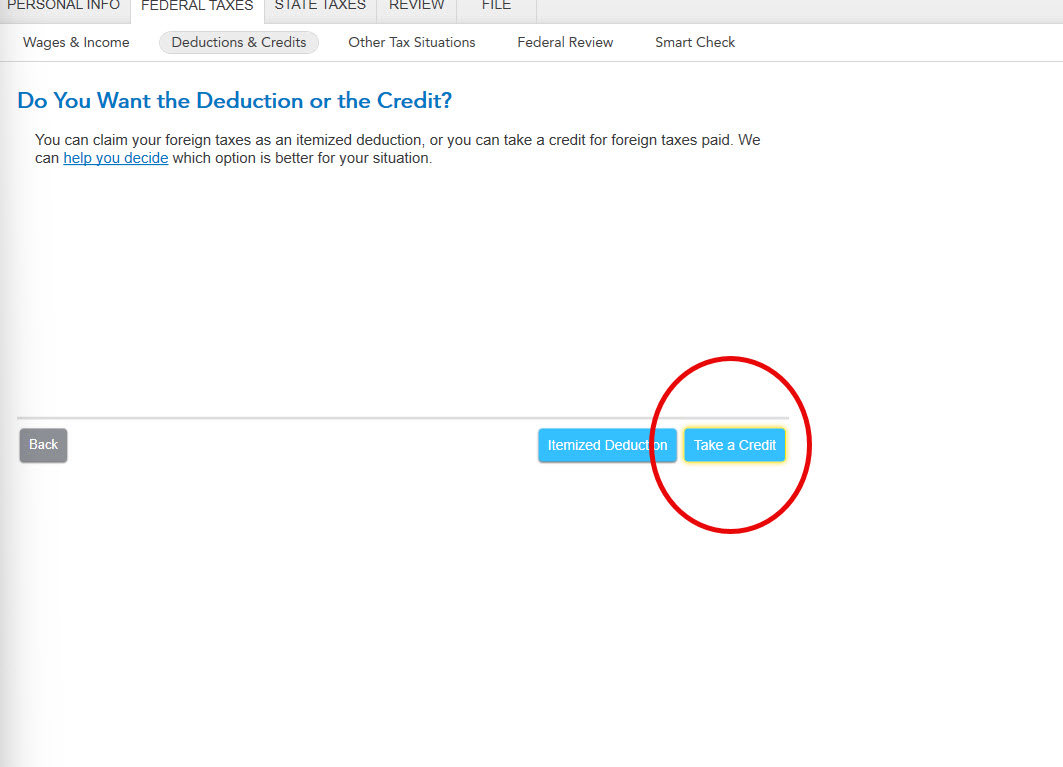 Turbo tax has automatically assumed that I will take a deduction for Foreign Tax Credits.  I would like to change that to a tax credit.  How can I do that?