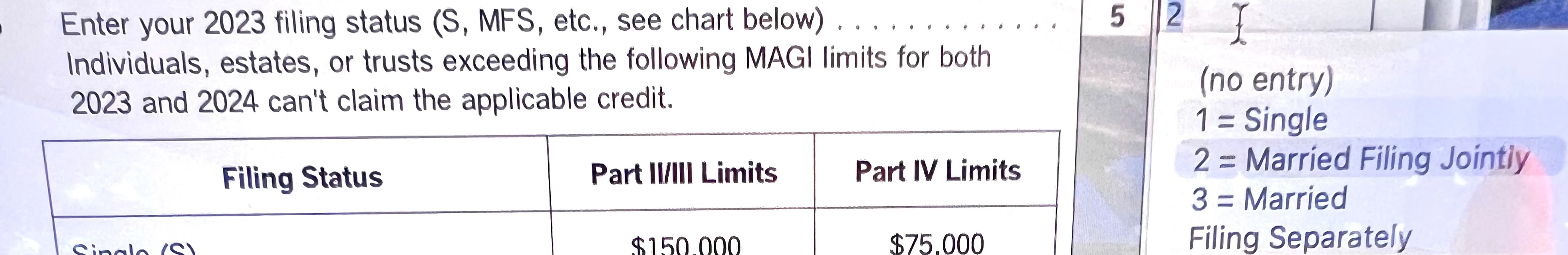 Enter your 2023 filing status (S, MFS, etc - see chart).
