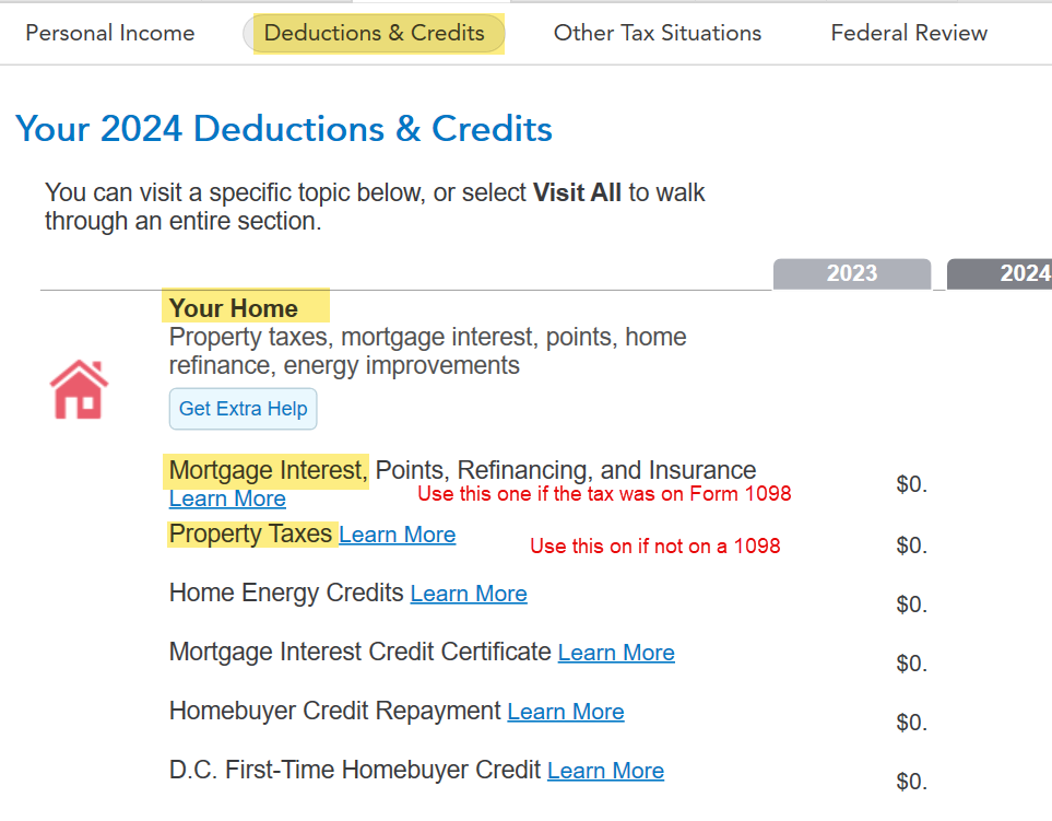 I entered the wrong amount paid in property taxes and need to adjust the amount actually paid.