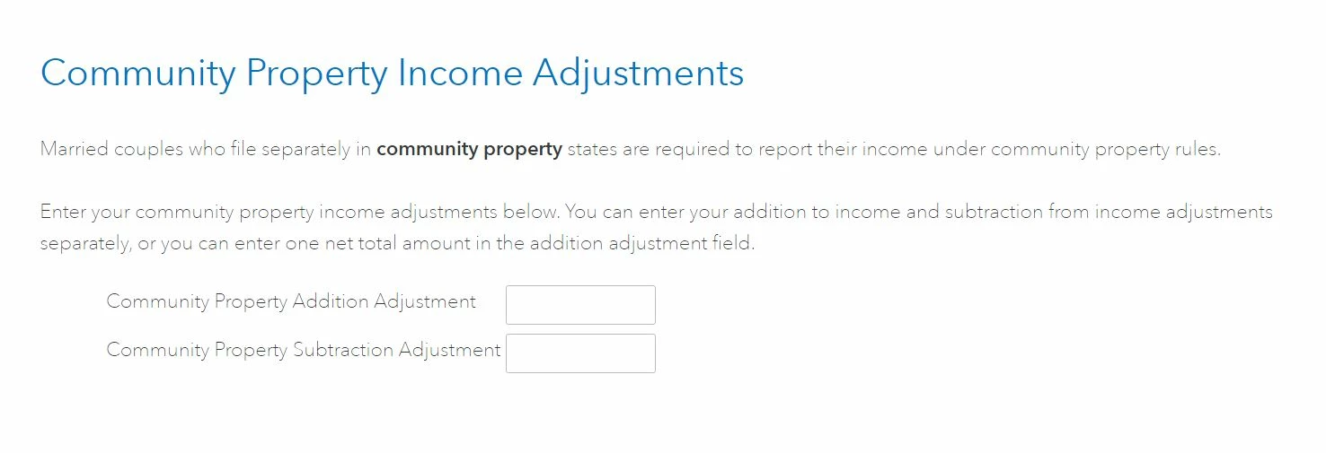 So in the image above, Bob would only add a subtraction of $300 in the Community Property Subtraction Adjustment field right and leave the other field blank?