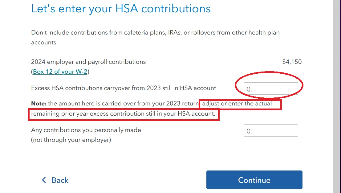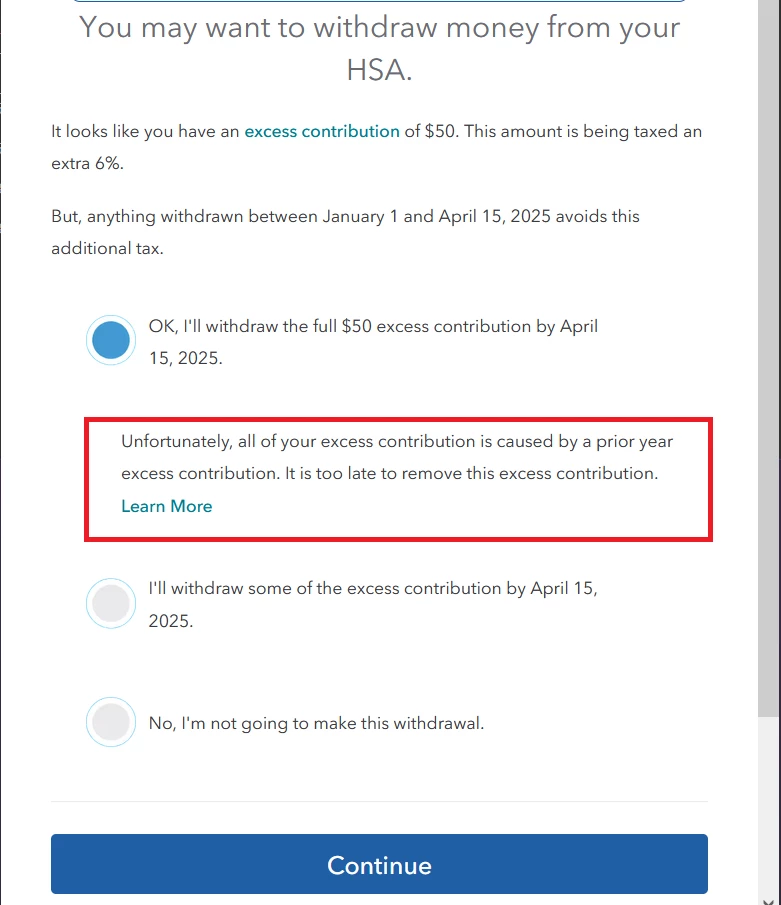 How do I tell TurboTax that I withdrew (as taxable) a prior year excess HSA contribution? I set "Excess HSA contributions carryover from 2023 still in HSA account" to 0.