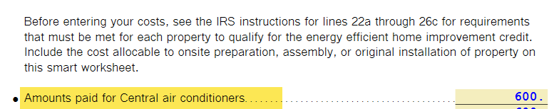 The IRS Publication says you can get up to $1,200 for HVAC installs. I installed 2 separate units, and they both qualify for $600. How do I put in both units? Turbo tax only lets me input a dollar amount, not per unit. So when I put in the total for both units, I only get a credit of $600. How do I break it out into 2 separate units?