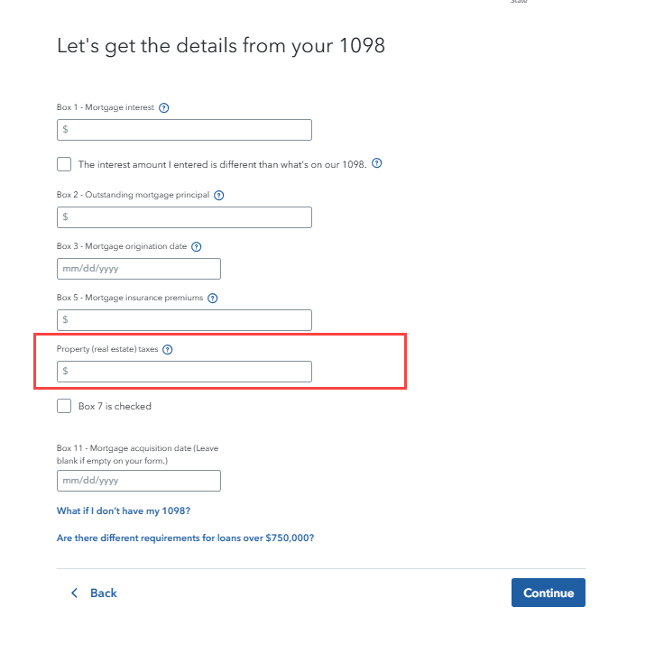 There are 2 places you can check to edit property taxes. First, in the mortgage interest statement (Form 1098) input, and secondly in the property tax deduction section. Here is how to navigate to each in TurboTax Online: