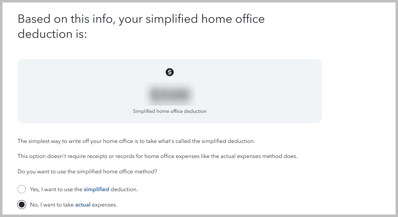 The simplified option has a rate of $5 a square foot for business use of the home. The maximum size for this option is 300 square feet. The maximum deduction under this method is $1,500.