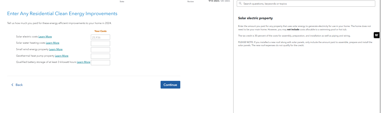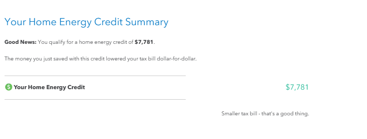 If you have not completed the rest of your return, this may be why the credit is not appearing. The energy credit is non-refundable, so if you don't have enough income tax being computed, the credit won't be generated. It is available for carryover to future years if you cannot use it this year.