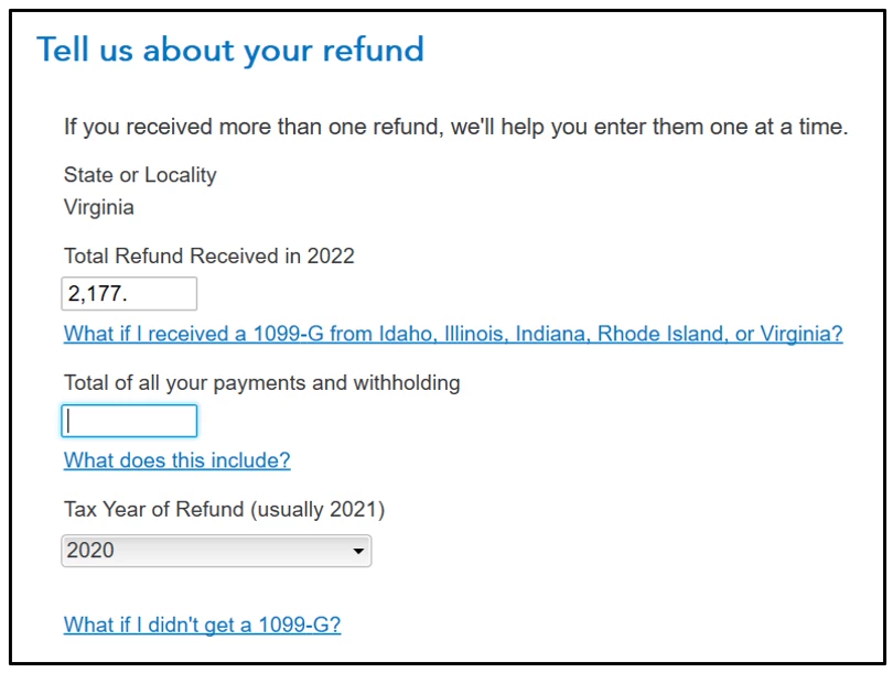 - The "Total Refund Received in 2022" was my state income tax refund for 2020.