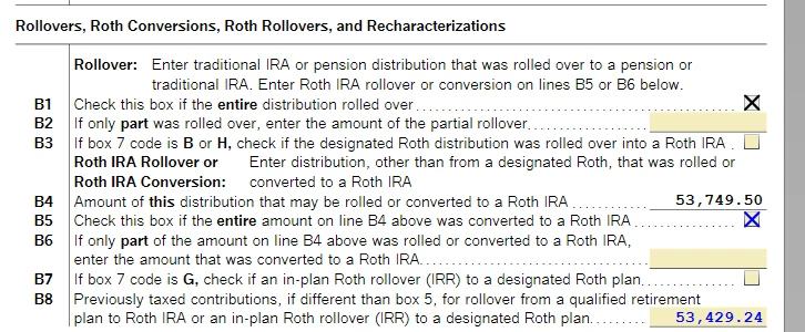 I tried one (Windows 11 Desktop Premier) with 50,222 distribution and 50,000 after-tax contributions (222 taxable) and it worked OK for me.   (with latest update rev 024.000.0355)