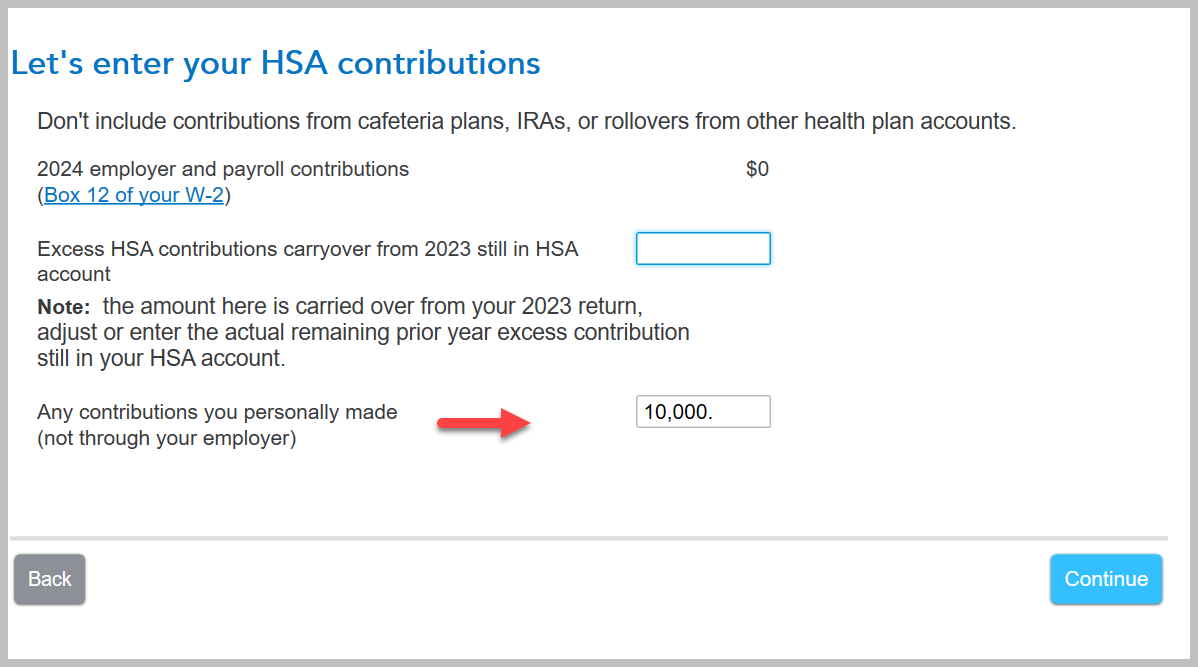 Your screen will say, "Tell us about health-related accounts you had in 2024" On the screen that says "Let's enter your HSA contributions" you can indicate your excess 2023 HSA Contributions.