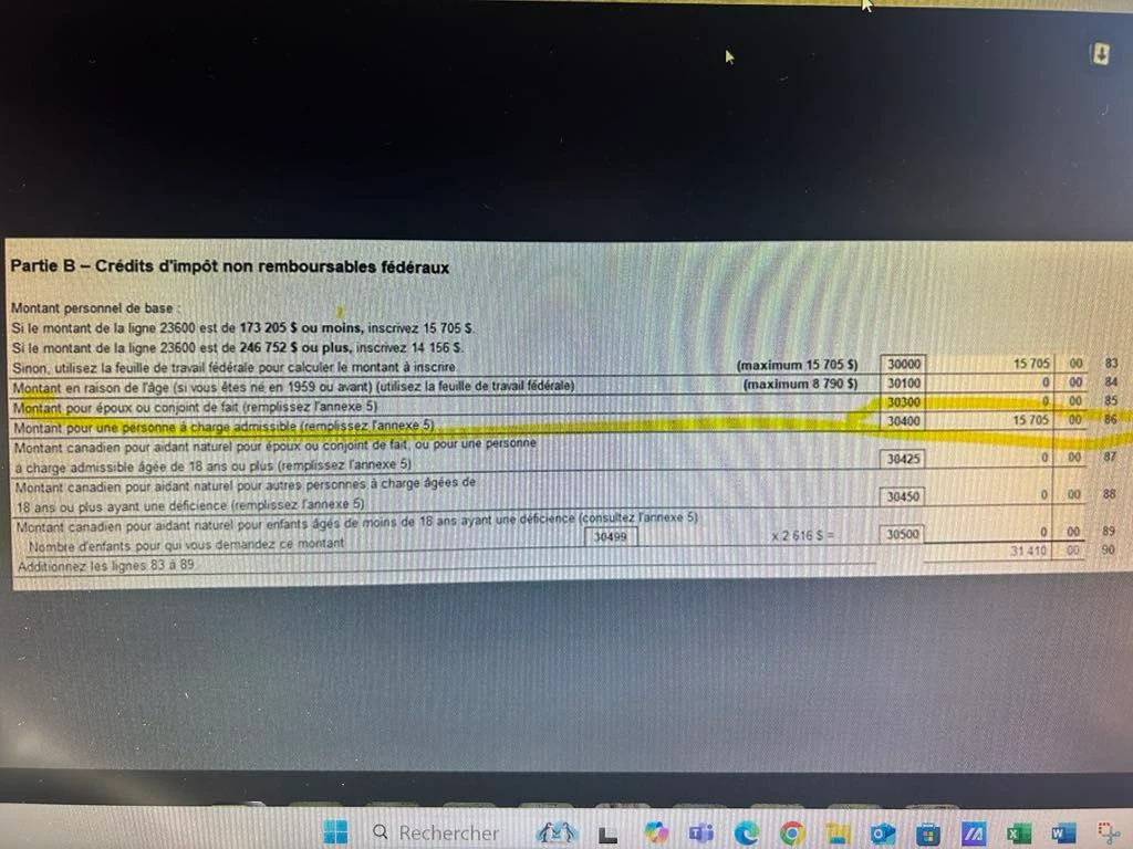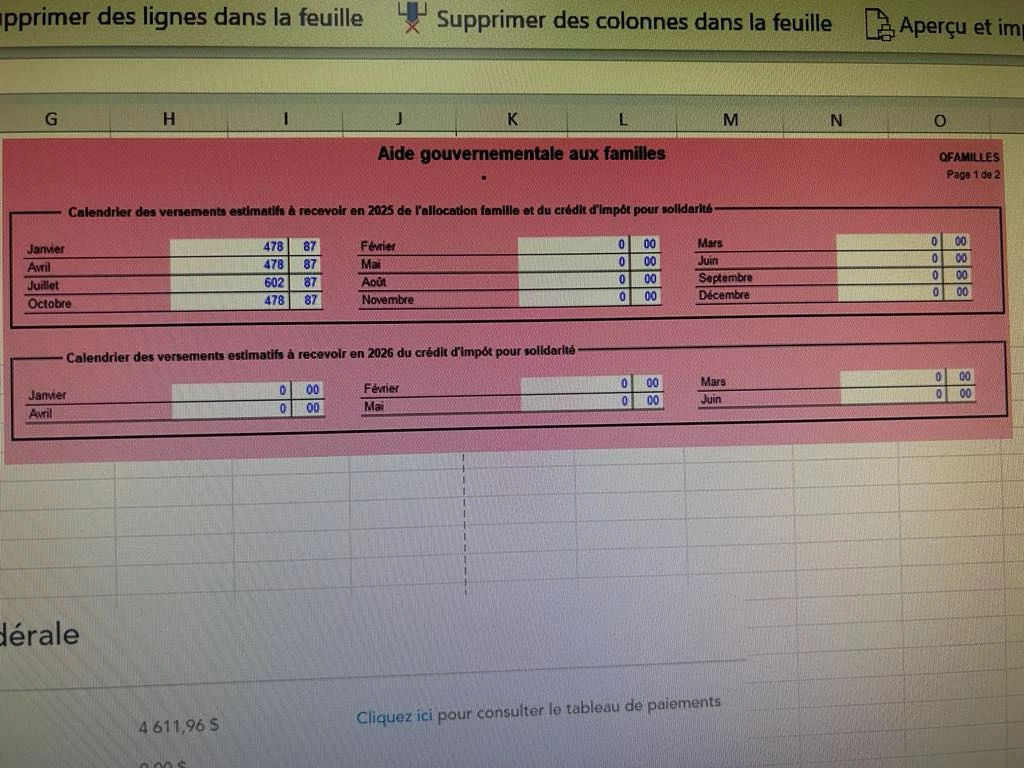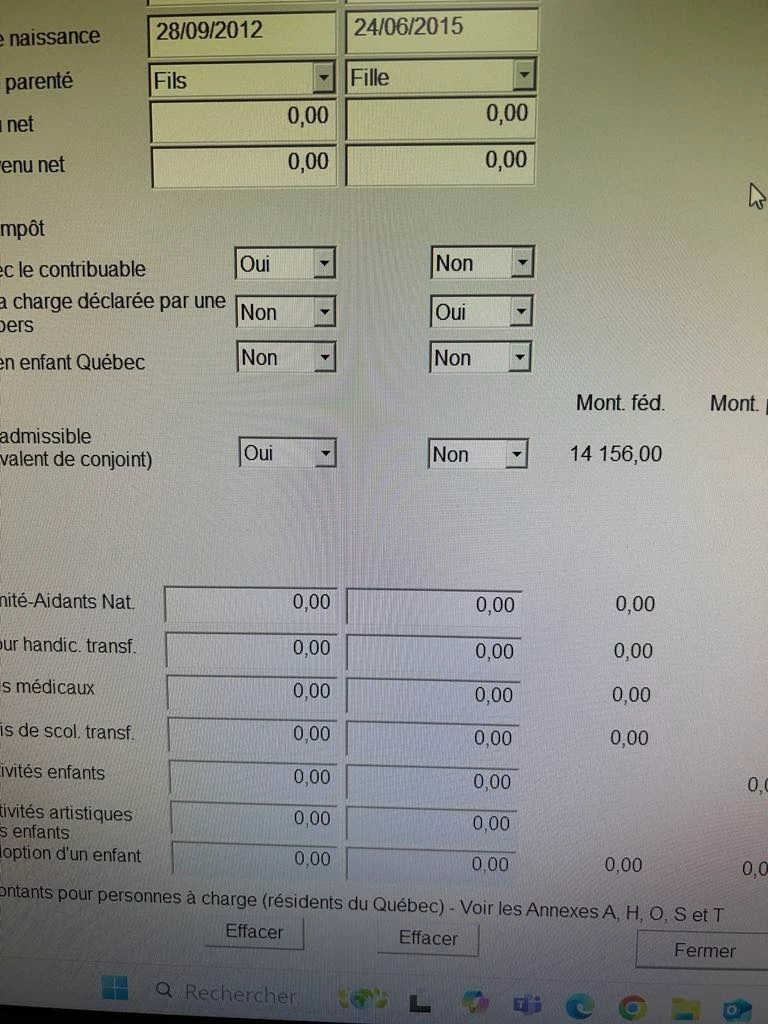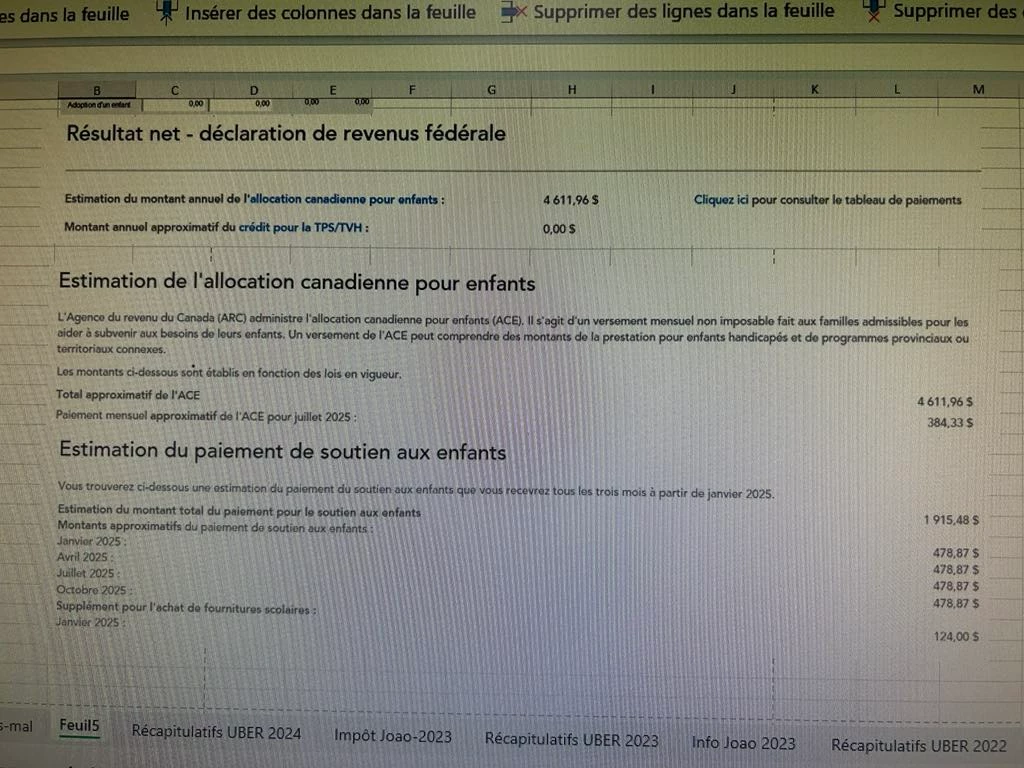 Chacun est admissible au crédit d'équivalent de conjoint. Le problème c'est que l'aide gouvernementale aux familles du provincial et l'allocation canadienne pour enfants est demandé seulement par ma fille mais dans l'impôt du père, il y a des versements indiqués également.