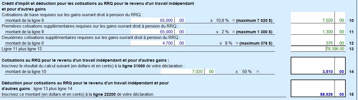 Il semblerait que le calcul à l'annexe 8 Cotisation RRQ soit eronné à la ligne 13 et 15