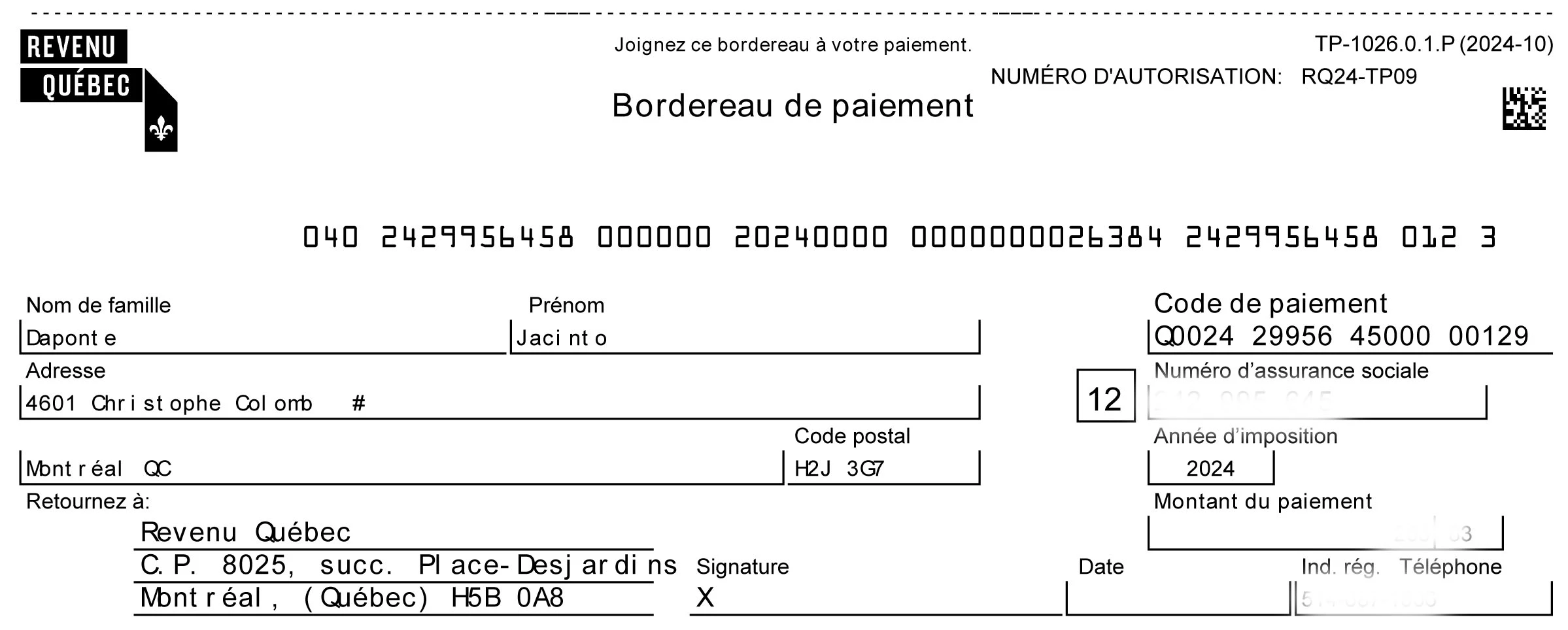 bordereau de paiement