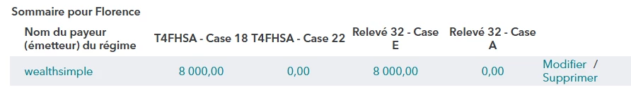 J'ai complété mon T4FHSA -case 18 : 8000 $ ainsi que mon relevé 32 - case E : 8000$