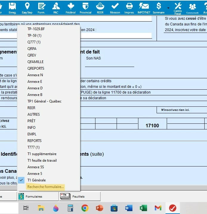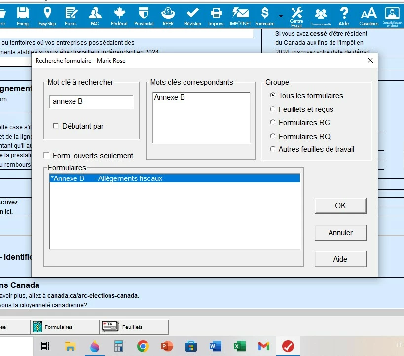 Dans votre dernière image où l'Annexe B n'apparaît pas dans la liste des formulaires, voici comment le récupérer et l'ouvrir :