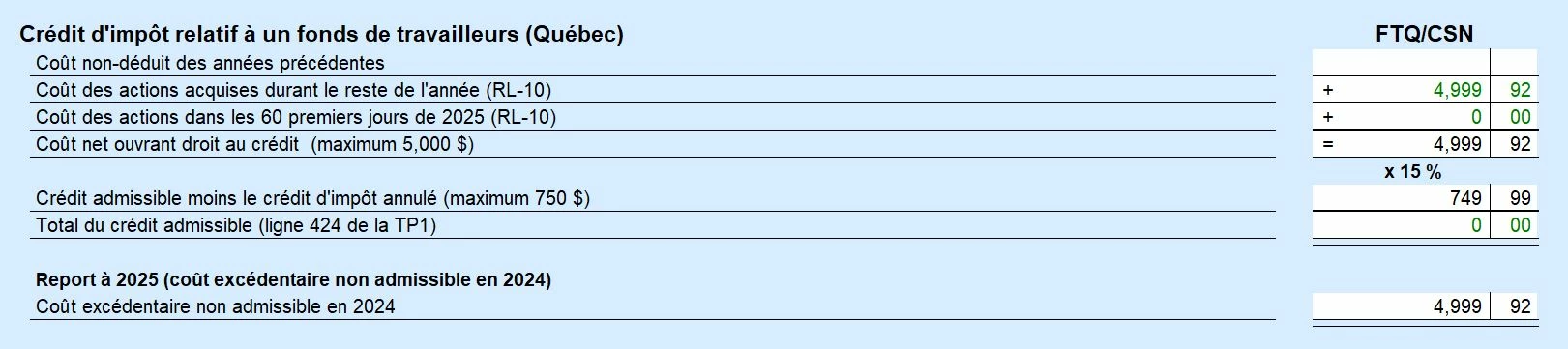 Crédit d'impôt relatif à un fonds de travailleurs (Québec) - report à 2025