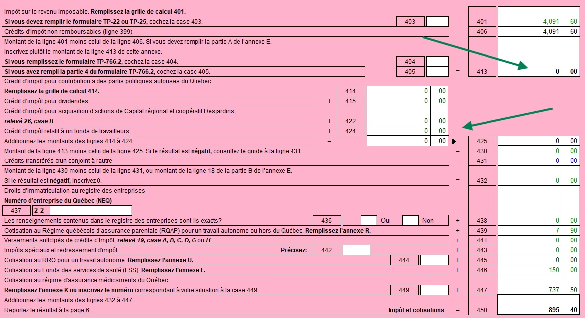 Ainsi, mon crédit d'impôt de 750$ n'apparait donc pas sur ma déclaration provinciale à la ligne 424.