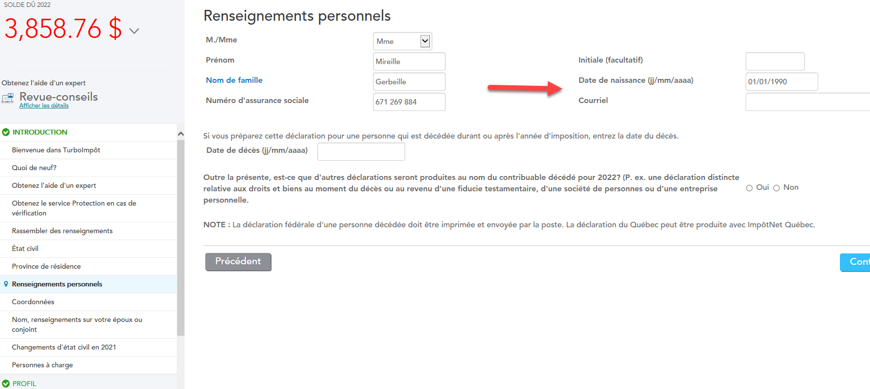 Erreur date de naissance