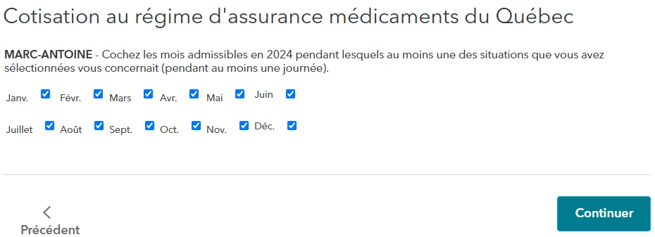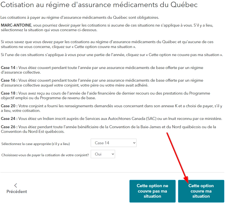 J'ai une assurance médicament privé et je paie pour ma conjointe. Voici ce que j'ai entré dans l'entrevue section "Provincial/Régime d'assurance médicaments du Québec":