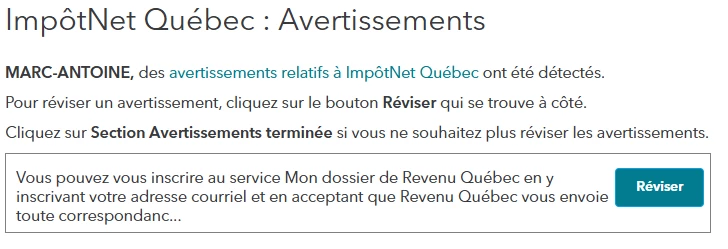 J'ai cette erreur lorsque j'arrive pour soumettre à ImpotNet Québec et je n'arrive pas à m'en sortir: