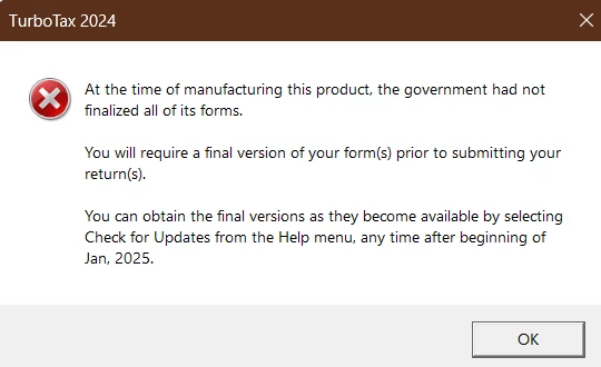 Comme beaucoup d'autres je reçoit un message d'erreur quand j'essaie de transmettre ma déclaration comme quoi les formulaires sont verrouillés bien que je n'utilise pas les formulaires mentionnés dans la liste. Est-ce que quelqu'un sait si cela va être réglé par Turbo impôt ou si on doit les fournir papiers et on a payé pour rien cette année?
