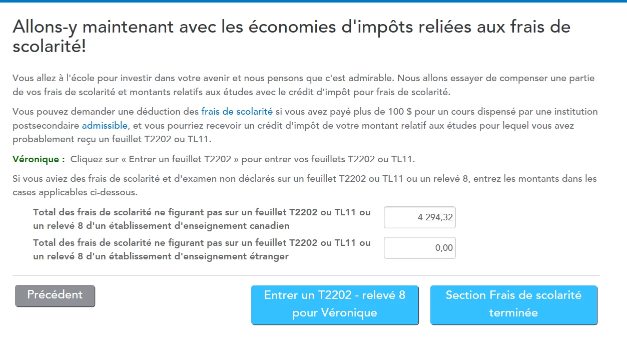 J'ai des frais de scolarité d'un établissement au Québec et je réside au Québec. Lorsque j'entre les frais, la déduction apparait au fédéral mais pas au Québec.