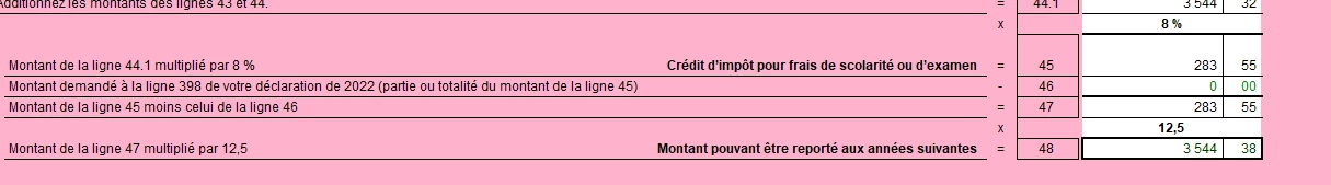 La ligne 398 est nulle et losrque je vais à l'annexe T, je vois le montant à la case 45, mais il ne se reporte pas à la ligne 46.