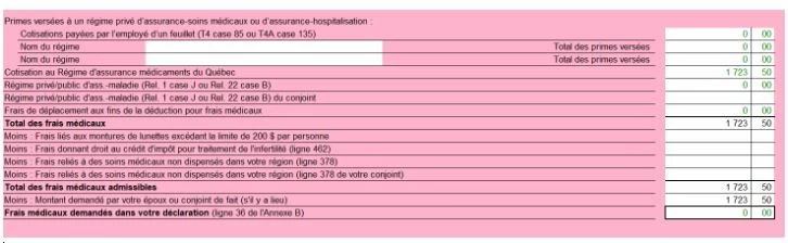 Frais médicaux - montant inutilisé demandé par le conjoint (cotisation au RAMQ). Comment l'ajouter au conjoint qui demande les frais médicaux ?
