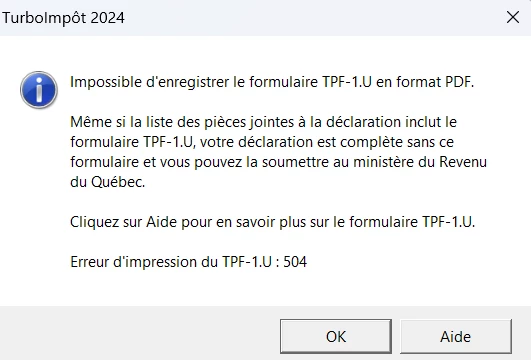 Bonjour, je ne peux pas imprimer la déclaration MRQ en pdf, j'ai le message d'erreur suivant. Or, ce fameux formulaire TPF-1.U n'existe pas. Où est le problème et comment le résoudre? Merci!