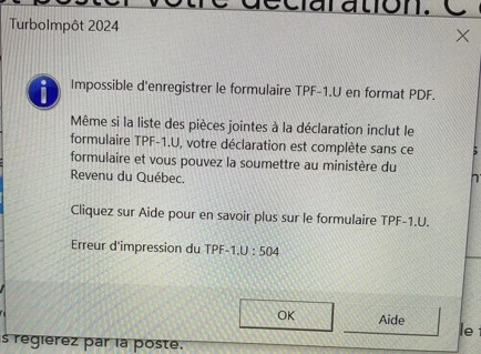 Comment résoudre ce problème ? Le site de Revenu Québec mentionne que ce formulaire est obligatoire. J'ai besoin de l'imprimer.