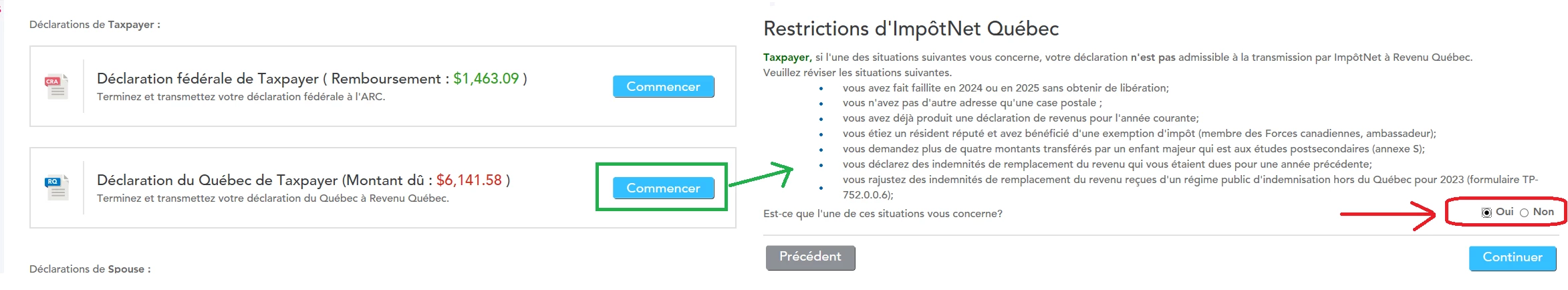 Impossible de soumettre ma declaration au Quebec
