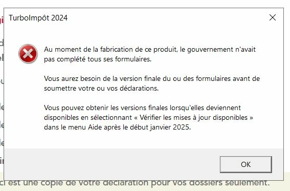 Lorsque je souhaite enregistrer les déclarations pour mes dossiers, le logiciel mentionne: