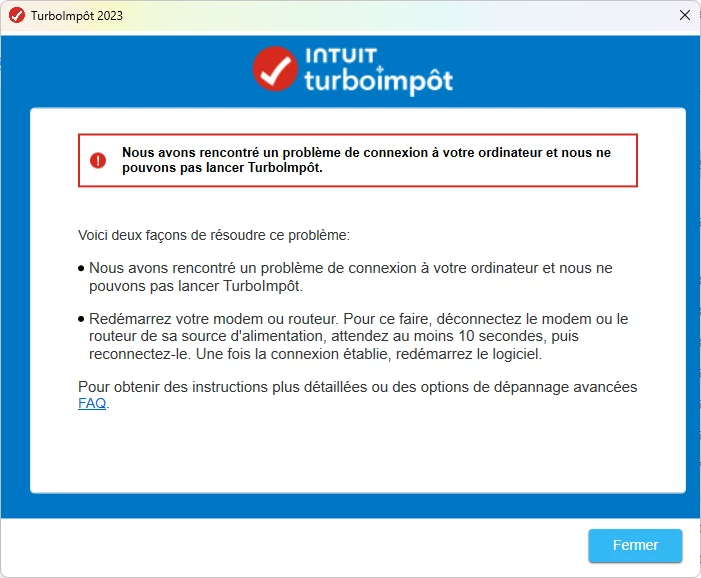 Incapable de lancer TurboImpot a cause de la connection Internet