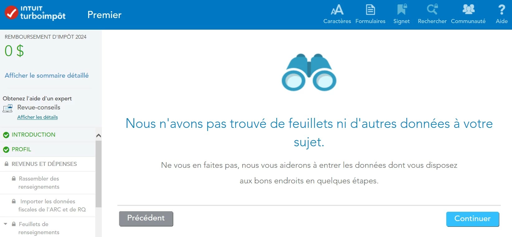 L'importation des feuillets de renseignements ne fonctionne pas