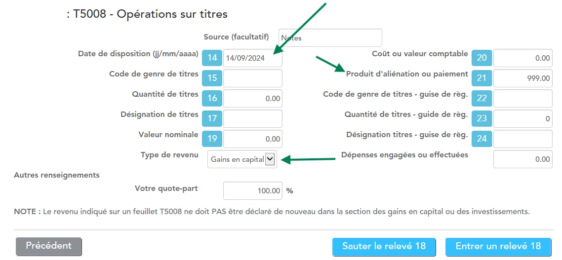 J'ai pré-rempli les transactions du T5008 de mon conjoint à partir du site de l'ARC et j'ai entré manuellement les 17 transactions de mon T5008 dans Turbot Impôt Premier. Dans les 2 cas, les transactions ne se transfèrent pas sur l'annexe 3. Les montants sont encore à 0 sur l'annexe 3. Pourquoi? Ca devrait se faire automatiquement.