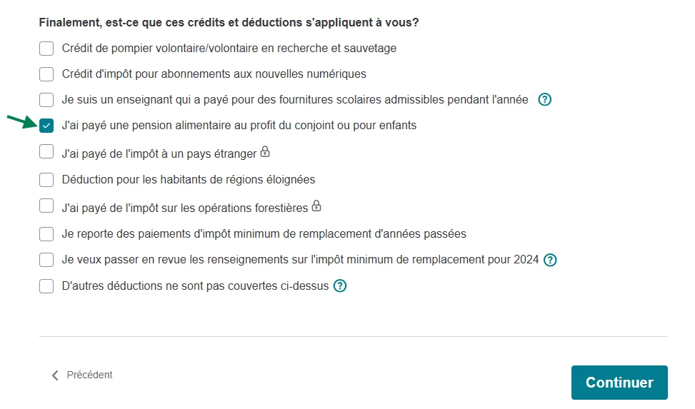 ... puis en retirant la coche de la rubrique pension alimentaire payée (voir ci-dessous).