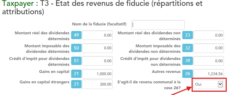 J'ai un T3 case 26 autre revenu, il dise de le mettre au Canada dans la ligne 13000 (autres revenus) a l'endos du T3