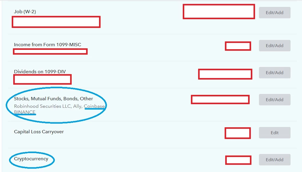 I added all of my cryptocurrency transactions under the "Cryptocurrency" tab (which is under "Wages and Income" tab on the "FEDERAL" section page. After adding the transactions, I have noticed that the cryptocurrency transactions are showing up both under the "cryptocurrency" tab as well as the "Stocks, mutual funds, bonds, other" tab. Just wanted to ask if this is normal? I had losses in cryptocurrency trading last year so want to make sure I don't end up filing it as a duplicate loss. Picture attached for review (COINBASE & BINANCE are cryptocurrency exchanges which I used for trading).